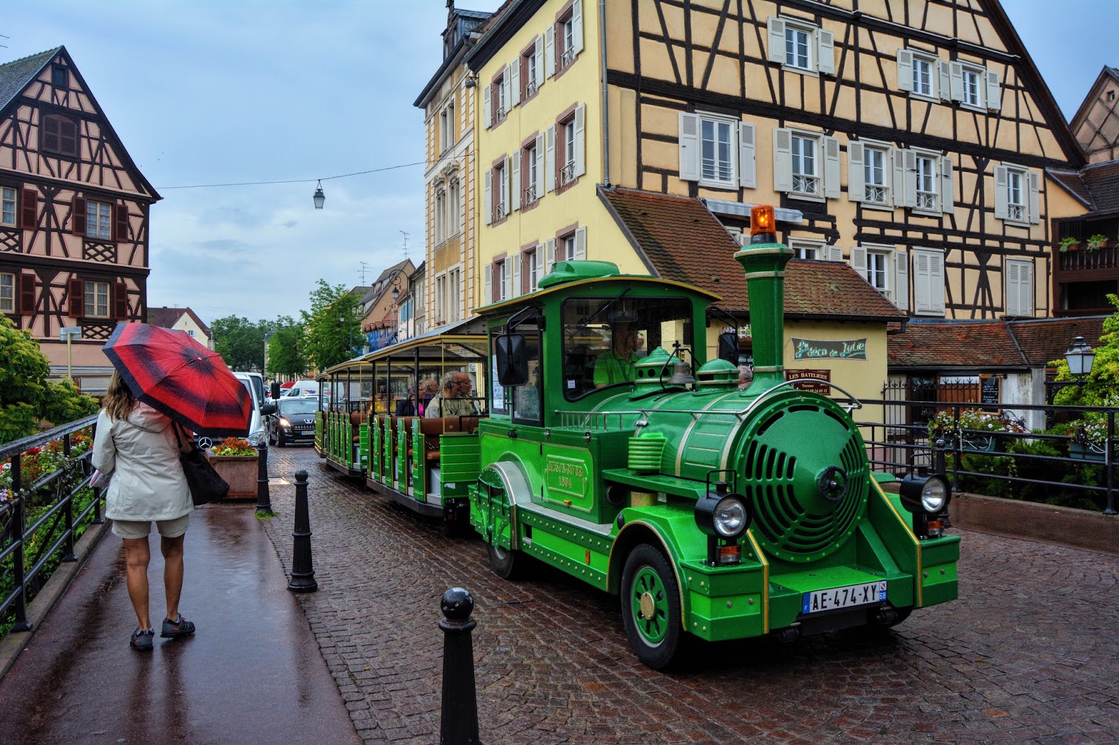 By the time I got to Colmar, it had started raining again and I thought that rain was going to play spoilsport. The tourism guy at the railway station did not speak English and I did not understand a word of what he said. I did see people phoning for cabs from a phone booth just outside the railway station. There were buses available too.